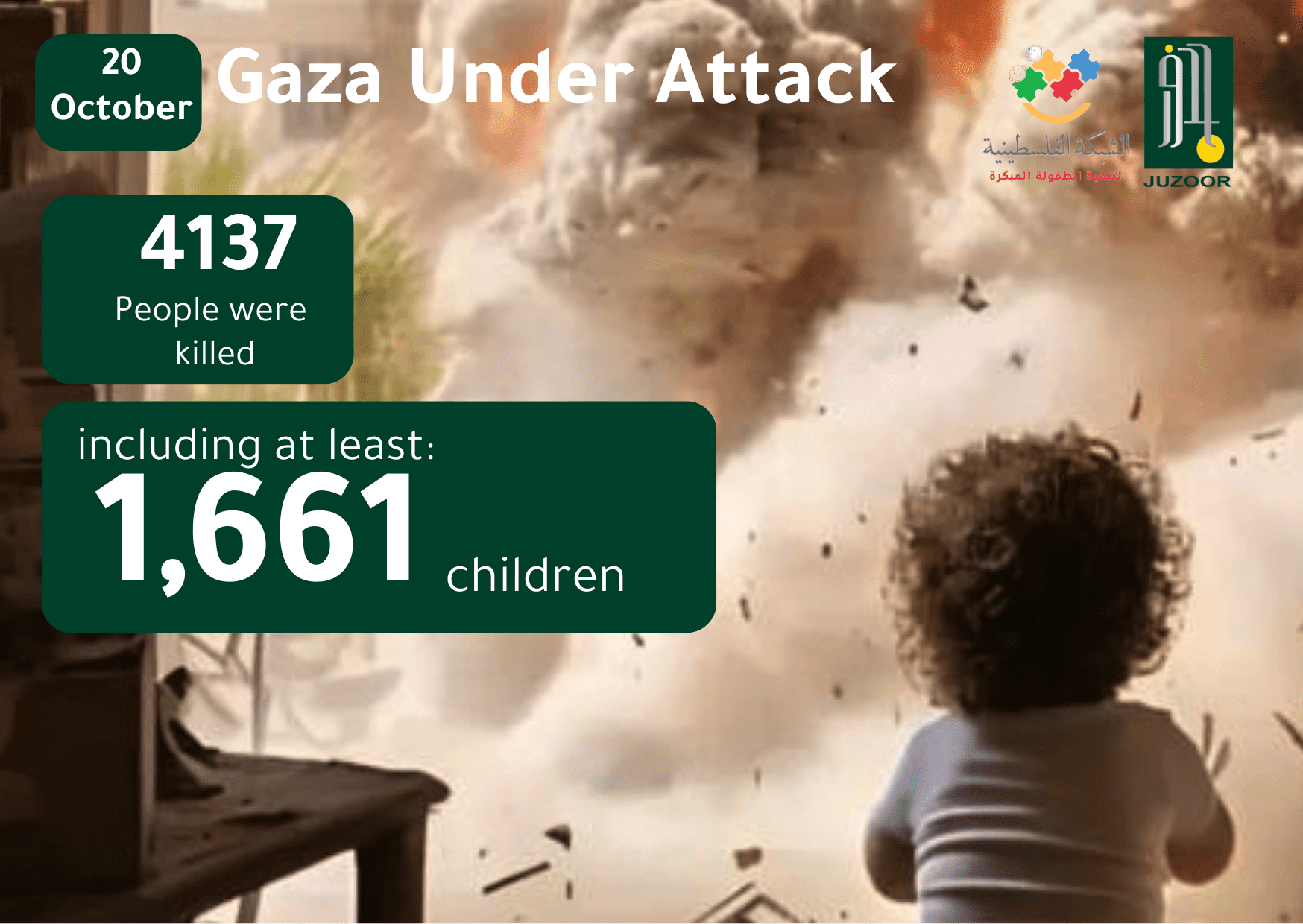 اوكتوبر ٢٠، ٢٠٢٣:  هنالك 4,137 شهيد ومن بينهم 1,661 طفل